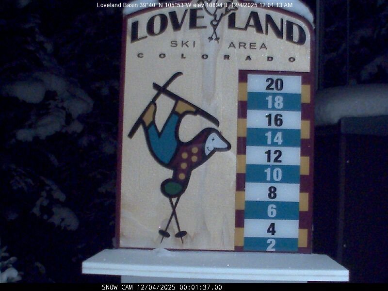 These snow stakes are displayed as of: December 3, 2025 11:34:51 pm A-Basin Beaver Creek Breckenridge Copper Mountain Keystone Loveland Vail Winter Park