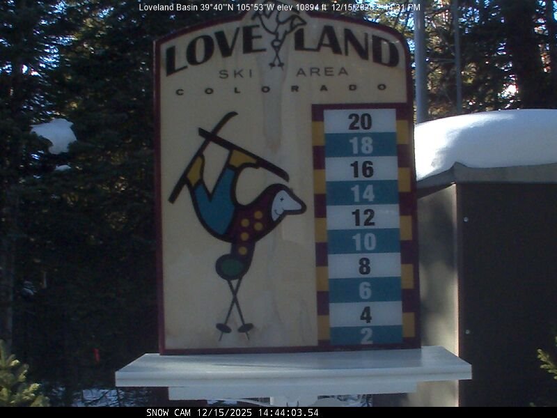 These snow stakes are displayed as of: December 14, 2025 2:31:31 pm A-Basin Beaver Creek Breckenridge Copper Mountain Keystone Loveland Vail Winter Park